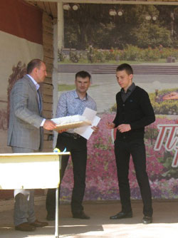 Также городская власть отметила инициативную молодежь города – студентов МГПУ за организацию и проведение патриотических мероприятий, в.т.ч. флешмобов. Представителям студенческого актива в торжественной обстановке вручили праздничный торт с патриотической символикой. Управделами горисполкома Елена Дубинина отметила, что молодежь Мелитополя любит свой город, любит свой край и свое государство, что проявляется не только на словах, а и на деле. | |