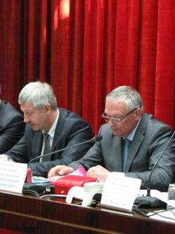 За «круглым столом» в зале заседаний ОГА 6 мая собрались: заместитель Министра регионального развития, строительства и ЖКХ Украины Григорий Семчук, глава облгосадминистрации Валерий Баранов и его заместитель Петр Гончарук, представители власти на местах. Мелитополь на заседании представили: секретарь Мелитопольского городского совета, и.о городского головы Сергей Минько, заместитель городского головы Ирина Рудакова, стажер на должность заместителя городского головы Олег Бандурин, председатель постоянной депутатской комиссии по вопросам бюджета Валерий Лябах, директор КП «Водоканал» Сергей Васюренко, начальник УКХ Алексей Тегимбаев.
