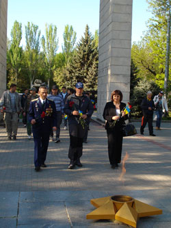 Присутствующие почтили память погибших минутой молчания и возложили цветы к Вечному Огню.