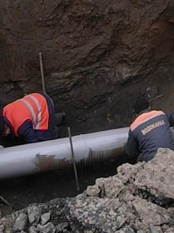 Как рассказал директор КП «Водоканал» Сергей Васюренко, с 3-го марта специалисты предприятия выполняли работы по локализации места повреждения железобетонной трубы диаметром 1000 мм в гаражном кооперативе по ул. Осипенко. В результате удалось установить пробку и место повреждения подготовить для проведения дальнейших работ.