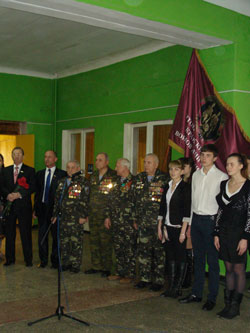 Председатель ветеранской организации Владимир Андреев показал фотостенд, посвященный подвигу солдат - наших земляков, воевавших с фашистскими захватчиками и выполнявших интернациональный долг в Афганистане. Также он рассказал о планах общественной организации в рамках патриотического воспитания молодежи и взаимодействия с городской властью в вопросах социальной поддержки ветеранов, инвалидов войны, семей погибших и умерших.