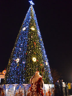 Вечером 19 декабря на Площади Победы в Мелитополе зажглась огнями 16-тиметровая искусственная елка. Светодиодные подвески – свечки, колокольчики и снежинки, установленные специалистами КП «Горсвет» озарили огнями собравшихся горожан и гостей города, многие из которых пришли с детьми.
