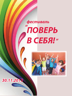 30 ноября 2013 года в 9-30 в ДК им. Т.Г.Шевченко состоится фестиваль «Поверь в себя!», посвященный 10-летию со дня создания Центра реабилитации смешанного типа для инвалидов и детей-инвалидов Мелитопольского городского совета Запорожской области и Международному дню инвалидов.