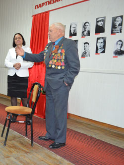 | В преддверии Дня партизанской славы 20.09.2013 в Мелитопольском городском краеведческом музее прошла встреча «Подпольное движение сопротивления: на пути к победе». На встечу были приглашены учащиеся педагогического лицея «Творчество» и участники Великой Отечественной войны: Гуляко Иван Степанович, Борисенко Василий Матвеевич и Голофаст Николай Мефодиевич. Ветераны рассказали молодому поколению о событиях оккупационных дней 1941-1943 гг. В ходе встречи учащиеся увидели уникальные фотографии подпольно-диверсионных групп и партизанского отряда «За Родину». Ветеранам Великой Отечественной войны лицеисты подарили музыкальные и поэтические подарки. | |