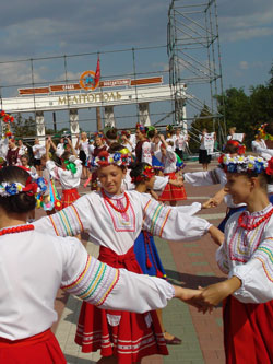 На большой сцене, установленной в центре площади Победы с праздничными поздравлениями выступили участники городских культурно-национальных обществ, продемонстрировав в своих концертных номерах самобытность и разнообразие традиций Мелитополя.