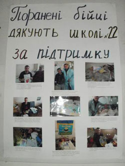 Визначним стало те, що учні Мелітопольської загальноосвітньої школи І-ІІІ ступенів №22 отримали відповідь від поранених, які знаходяться на лікуванні у Київському військовому шпиталі. У газеті, зробленій своїми руками, військовослужбовці висловили вдячність нашим школярам за моральну та матеріальну підтримку.