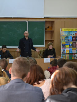 2 жовтня на базі МДПУ ім. Б. Хмельницького управлінням молоді та спорту Мелітопольської міської ради було організовано та проведено інформаційно-просвітницький захід «Захисти себе сам», в рамках якого відбулася зустріч студентської молоді навчальних закладів міста з практикуючим юристом Дмитром Лещенком.
