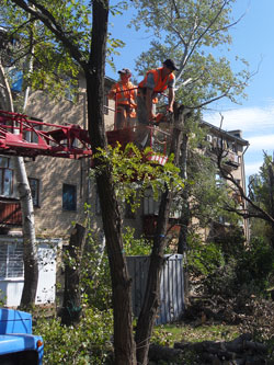 Как сообщил начальник УЖКХ Алексей Тегимбаев, за прошедшую неделю было подроблено на щепу 35 куб м вывезено 155 куб м древесины, убрано 12 деревьев, в т.ч. аварийных. Сегодня работы ведутся на ул. Гоголя.